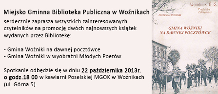 Informujemy czytelników, iż na podstawie § 10 p.22 Rozporządzenia Rady Ministrów (Dz.U. 2020, poz. 2091) od 30 listopada 2020 r. biblioteki Gminy Woźniki wznawiają swoją działalność. Zbiory będą udostępniane bez dostępu do półek. Obowiązują zasady reżimu sanitarnego: dezynfekcja rąk,maseczka i zachowana odległość 2m. W dalszym ciągu obowiązuje kwarantanna książek. Nie organizujemy wydarzeń otwartych dla czytelników.