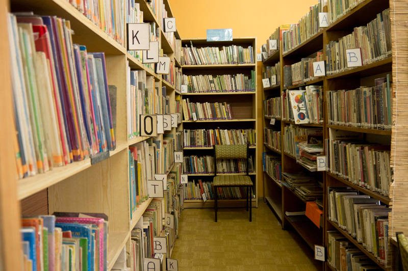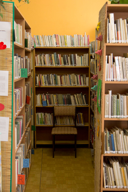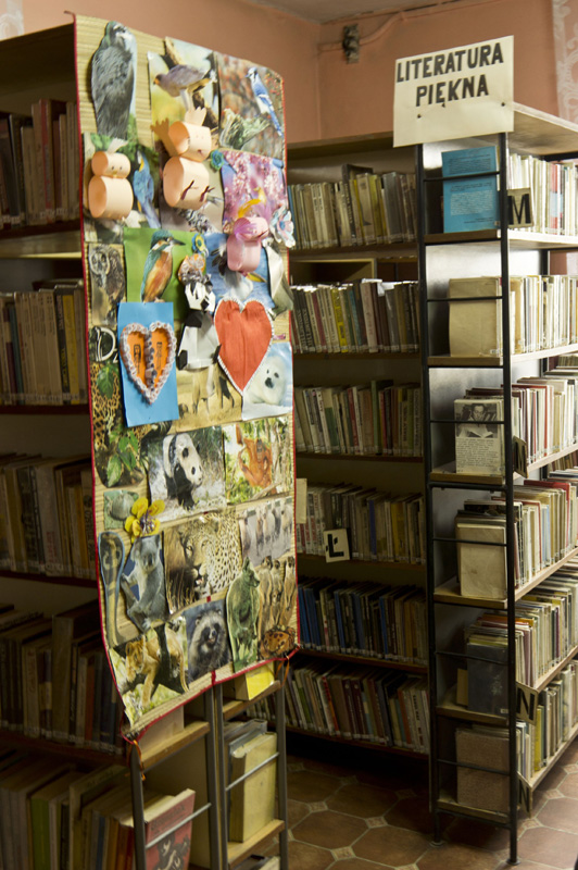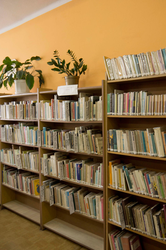 W pierwszym lokalu znajduje się księgozbiór podręczny oraz literatura dla dzieci i młodzieży.