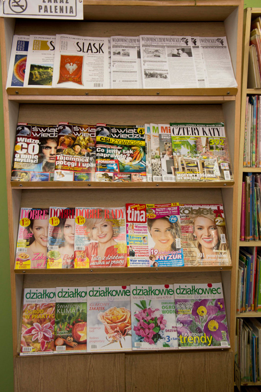 Tina, Dobre Rady, Przyjaciółka,Party , Kobieta i Życie ,Pani Domu, Świat Kobiety,Por. Domowy, Działkowiec, Naj - magazyn,Mój piękny ogród, Dom z pomysłem ,M jak mieszkanie , Kumpel. Ponadto dostępne jest czasopismo z naszego regionu '' Wiadomości Ziemi Woźnickiej''.