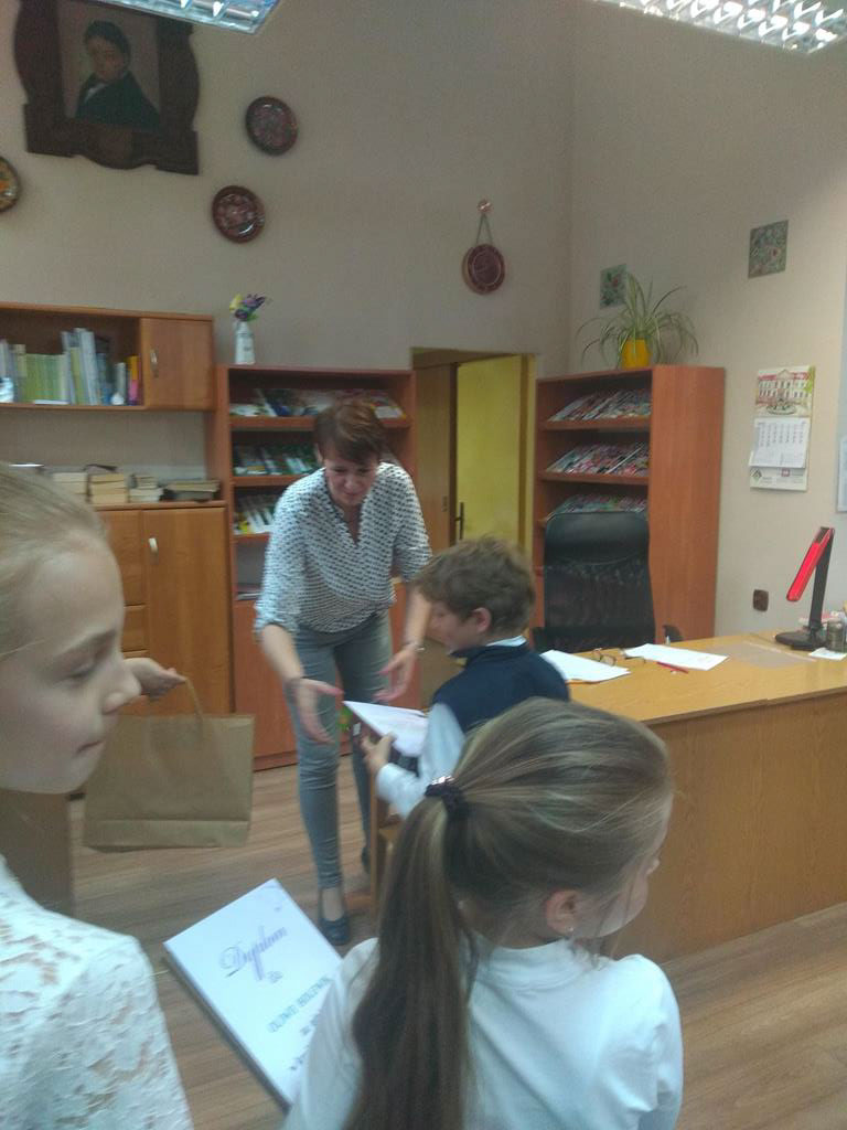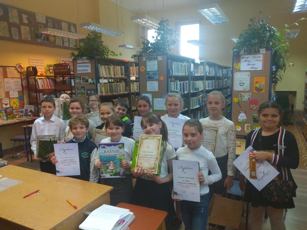 Finaliści otrzymali pamiątkowe dyplomy, nagrody książkowe oraz gry planszowe, a pozostali uczestnicy również dyplomy i wiele drobnych ciekawych upominków. Konkurs pokazał bardzo dużą znajomość baśni i legend polskich wśród młodych czytelników. Dziękuję wszystkim za wspaniałą zabawę z baśniami polskimi i życzę dalszych sukcesów.