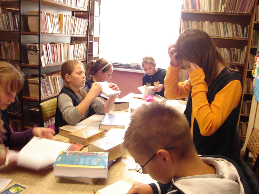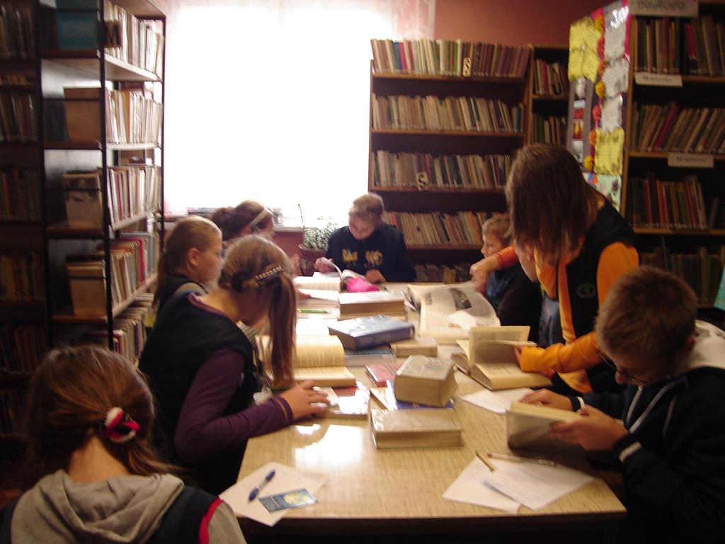 Uczniowie po szerokim omówieniu tematu rozpoczęli pracę z encyklopedią, słownikiem. Wyszukiwali hasła i odczytywali informacje. Prace zostały wykonywane w grupach . Lekcja przeprowadzona w placówce bibliotecznej , pozwala na przedstawienie uczniom różnych rodzajów encyklopedii i słowników.