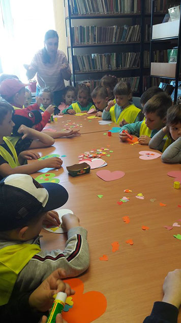 Przygotowały kolorowe serca z koniczynką, by wręczyć swojej kochanej mamie z okazji ich Święta . foto lekcje biblioteczne