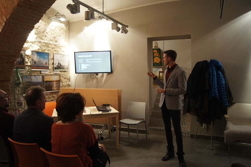 W drugiej części spotkania Michał Grotecki – młody kompozytor ,laureat kilku ważnych nagród opowiadał nam o swojej kompozytorskiej twórczości. W 2014 r w Filharmonii Częstochowskiej zadebiutował koncertem jego utworu pt. ’’Strumień życia’’ ,jest to muzyka programowa opowiada o esensji życia. Podczas spotkania przedstawił nam kolejny skomponowany swój utwór z okazji 360 rocznicy zwycięskiej obrony Jasnej Góry w czasie ‘’potopu szwedzkiego’’. Utwór ‘’Oblężenie Jasnej Góry’’ stanowi muzyczną opowieść wspomnianych wyżej wydarzeń rozegranych zimą w 1655 roku. Młody kompozytor opowiadał, że utwór powstał w oparciu o opracowaną przez niego partię narratora na podstawie dokumentów ze zbiorów biblioteki na Jasnej Górze. Podczas spotkania mieliśmy okazję posłuchać jedną część prawykonania utworu , który był wykonany 20 listopada 2015 roku na Jasnej Górze. Słuchanie utworu przeniosło nas w wyobraźnię i wizję tamtych czasów.