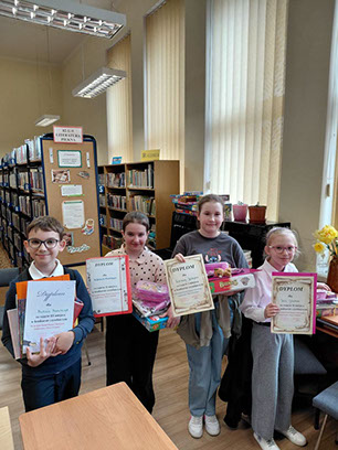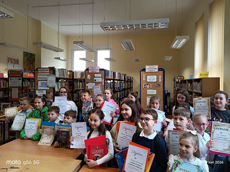 W dniu 20.04.2026r. w Miejsko- Gminnej Bibliotece Publicznej im. Józefa Lompy w Woźnikach po raz kolejny odbył się konkurs pt. "W krainie baśni Hansa Christiana Andersena i Braci Grimm". Do konkursu przystąpiło 25 uczniów klas II - IV ze Szkół Podstawowych z Kamienicy,Ligoty Woźnickiej, Psar i Woźnik oraz Niepublicznej Szkoły w Kamieńskich Młynach.