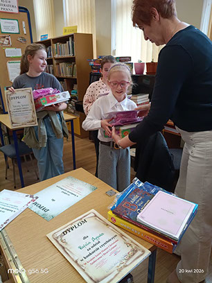 Dziękujemy za liczny udział w konkursie i życzymy dalszych sukcesów. Uczestnicy konkursu otrzymali pamiątkowe dyplomy, nagrody książkowe i artykuły szkolne. Laureaci otrzymali ponadto gry planszowe. Konkurs uwidocznił dużą znajomość baśni wśród uczniów. Z całego serca gratulujemy dzieciom wiedzy i dziękujemy za duże zainteresowanie konkursem.