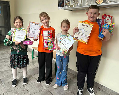 Serdecznie dziękujemy za duże zainteresowanie wiosennym konkursem. Gratulujemy twórczych pomysłów. Wszyscy uczestnicy konkursu plastycznego otrzymali nagrody i dyplomy, a laureaci dodatkowe nagrody rzeczowe- przybory szkolne i gry.