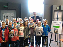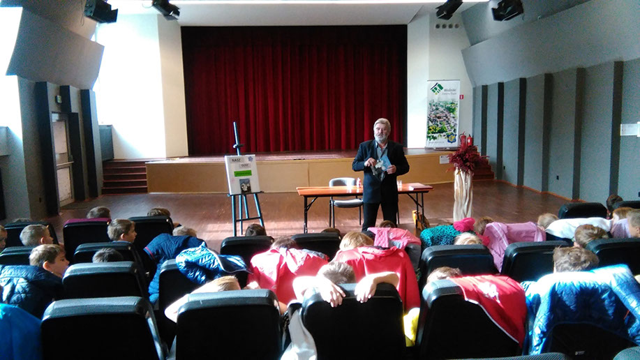 W dniu 04 października 2017 r. w Miejsko Gminnej Bibliotece Publicznej w Woźnikach odbyło się spotkanie autorskie dla uczniów klas II i III z Szkoły Podstawowej w Woźnikach z Zbigniewem Kołbą- fizykoterapeutą, autorem książki dla dzieci ‘’Znajdź mnie i kiedyś odwiedź.’’ Książka opowiada jak dziecka poprzez zabawę może wiele nauczyć się kontaktu z mapą i jak uczyć się żeby zapamiętać jak najwięcej. Podczas niezwykle interesującego spotkania autor właśnie o takich wskazówkach opowiedział uczniom , które zawiera opowiadanie. Zachęcał młodych słuchaczy do częstego czytania książek, gdzie pogłębia się z nich wiedzę. Uczniowie słuchali i sami czytali fragmenty książki, gdzie dowiedziały się, iż w Polsce jest wiele miejscowości o humorystycznych nazwach tj. Rogi, Łabędzie, Dłoń czy Pieczarki i wiele innych. Autor zadawał najmłodszym słuchaczom ciekawe zagadki , a uczniowie sami mieli okazję zadać pytania pisarzowi.