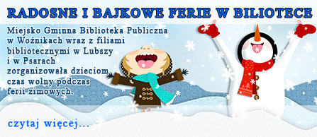 Informujemy czytelników, iż na podstawie § 10 p.22 Rozporządzenia Rady Ministrów (Dz.U. 2020, poz. 2091) od 30 listopada 2020 r. biblioteki Gminy Woźniki wznawiają swoją działalność. Zbiory będą udostępniane bez dostępu do półek. Obowiązują zasady reżimu sanitarnego: dezynfekcja rąk,maseczka i zachowana odległość 2m. W dalszym ciągu obowiązuje kwarantanna książek. Nie organizujemy wydarzeń otwartych dla czytelników.
