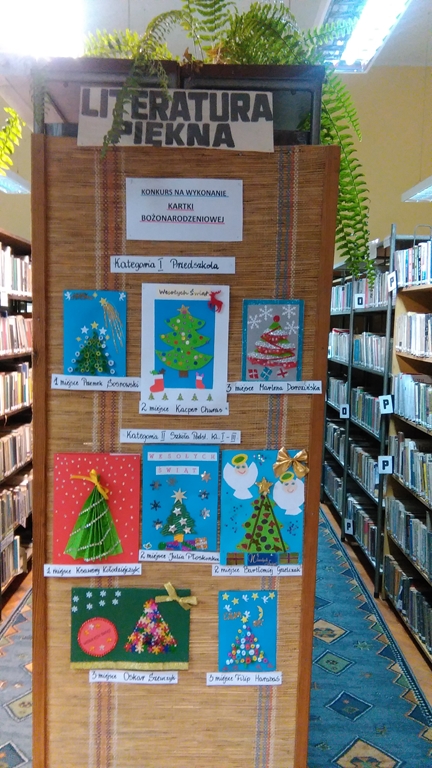W dniu 28 grudnia 2016 r. w Miejsko Gminnej Bibliotece Publicznej w Woźnikach został rozstrzygnięty konkurs plastyczny na wykonanie kartki bożonarodzeniowej .