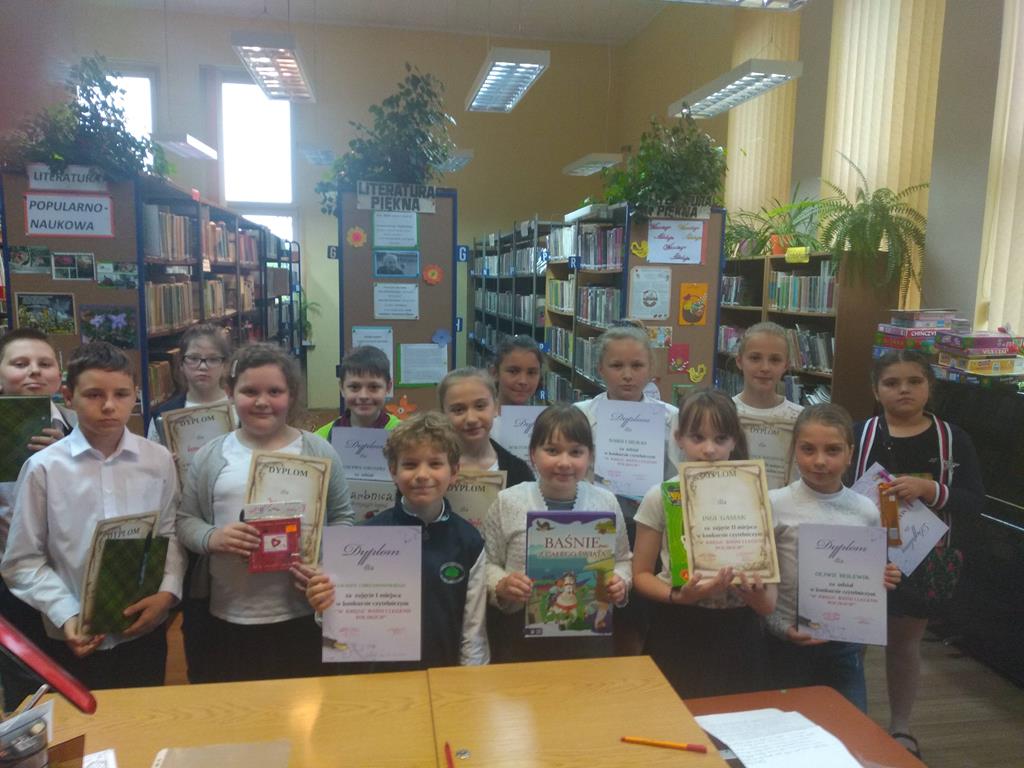 Finaliści otrzymali pamiątkowe dyplomy, nagrody książkowe oraz gry planszowe, a pozostali uczestnicy również dyplomy i wiele drobnych ciekawych upominków. Konkurs pokazał bardzo dużą znajomość baśni i legend polskich wśród młodych czytelników. Dziękuję wszystkim za wspaniałą zabawę z baśniami polskimi i życzę dalszych sukcesów.