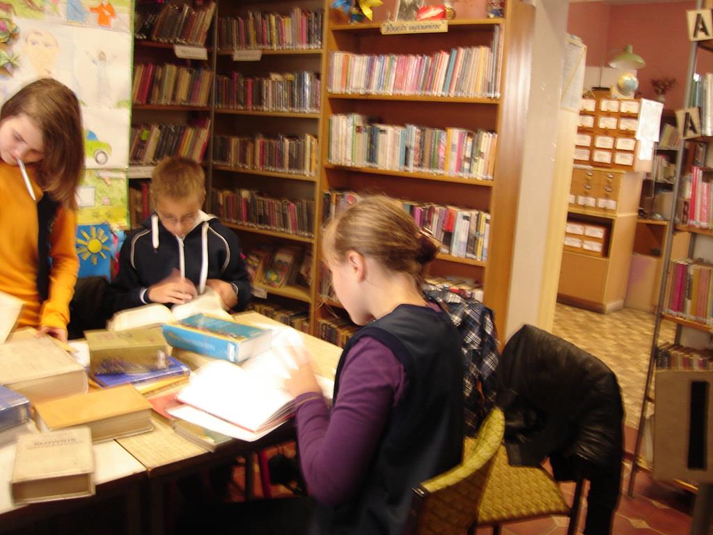 Uczniowie po szerokim omówieniu tematu rozpoczęli pracę z encyklopedią, słownikiem. Wyszukiwali hasła i odczytywali informacje. Prace zostały wykonywane w grupach . Lekcja przeprowadzona w placówce bibliotecznej , pozwala na przedstawienie uczniom różnych rodzajów encyklopedii i słowników.