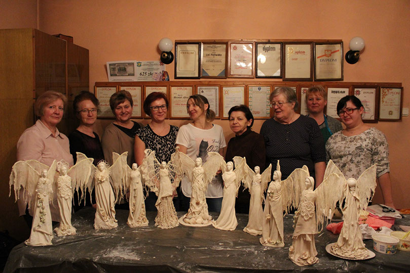 W dniu 13-14.03.2018 odbywaly się warsztaty rękodzieła promowane przez Stowarzyszenie Miłośników Ziemi Lubszeckiej oraz Filię Lubsza i Filię Psary. Nasza lokalna artystka Pani Anna Arendarska wprowadzlła nas w technikę utwardzania tkanin. Uczestniczki tworząc anioły, pokazały jak można swoją wyobrażnią tworzyć rękodzieło.piękno powstaje wtedy, gdy oddamy w pracę swoje serce i tak było na warsztatach. Każdy anioł był inny,co świadczy o pomysłowości i oddaniu.Zachwytów nie było końca.Dziękujemy Pani Arendarskiej za poświęciny czas.