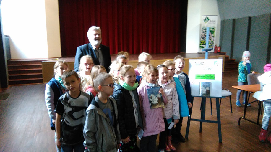 W dniu 04 października 2017 r. w Miejsko Gminnej Bibliotece Publicznej w Woźnikach odbyło się spotkanie autorskie dla uczniów klas II i III z Szkoły Podstawowej w Woźnikach z Zbigniewem Kołbą- fizykoterapeutą, autorem książki dla dzieci ‘’Znajdź mnie i kiedyś odwiedź.’’ Książka opowiada jak dziecka poprzez zabawę może wiele nauczyć się kontaktu z mapą i jak uczyć się żeby zapamiętać jak najwięcej. Podczas niezwykle interesującego spotkania autor właśnie o takich wskazówkach opowiedział uczniom , które zawiera opowiadanie. Zachęcał młodych słuchaczy do częstego czytania książek, gdzie pogłębia się z nich wiedzę. Uczniowie słuchali i sami czytali fragmenty książki, gdzie dowiedziały się, iż w Polsce jest wiele miejscowości o humorystycznych nazwach tj. Rogi, Łabędzie, Dłoń czy Pieczarki i wiele innych. Autor zadawał najmłodszym słuchaczom ciekawe zagadki , a uczniowie sami mieli okazję zadać pytania pisarzowi.